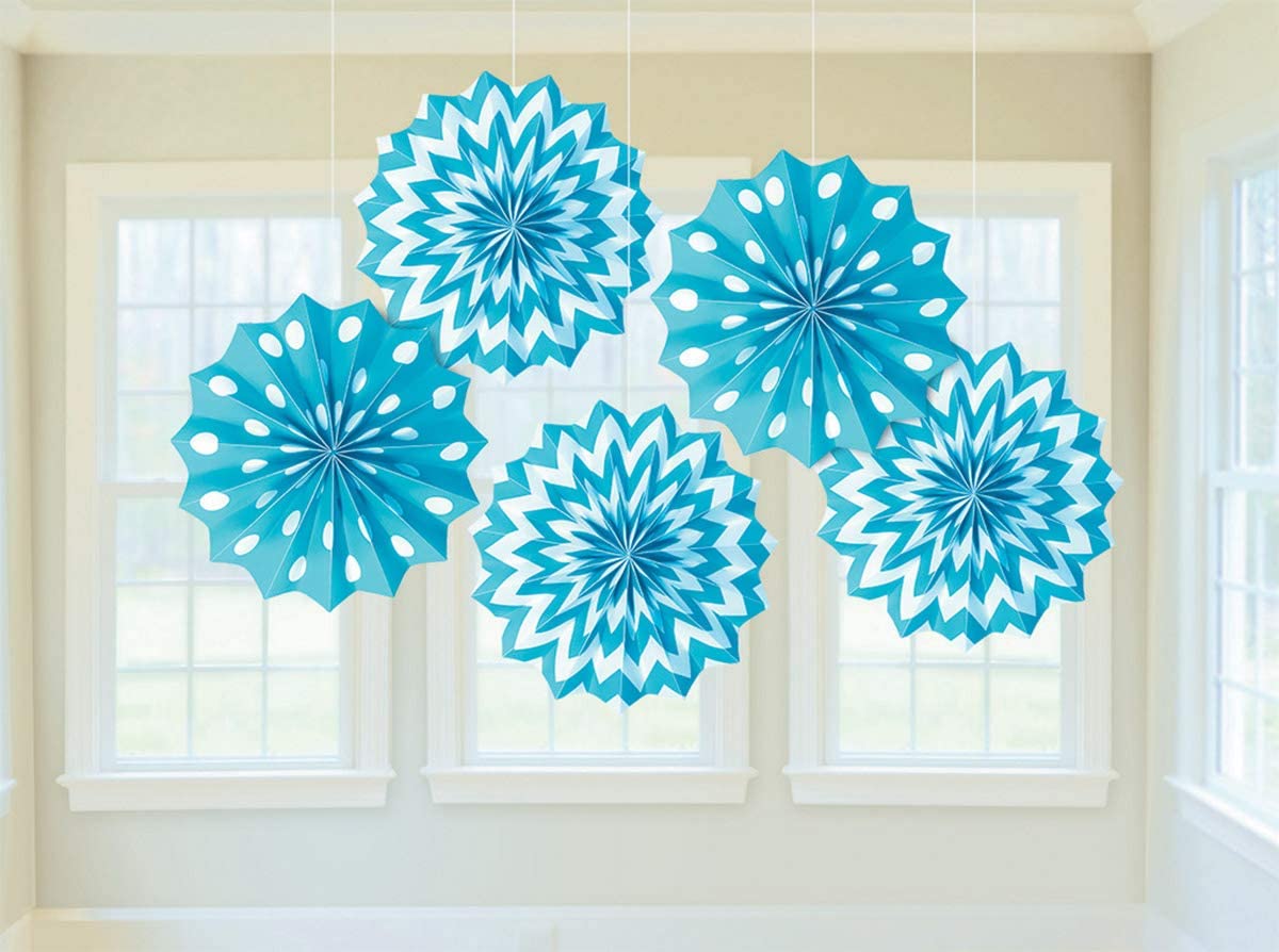 Baby Blue Hanging Paper Fan Decorations - 5 Pack