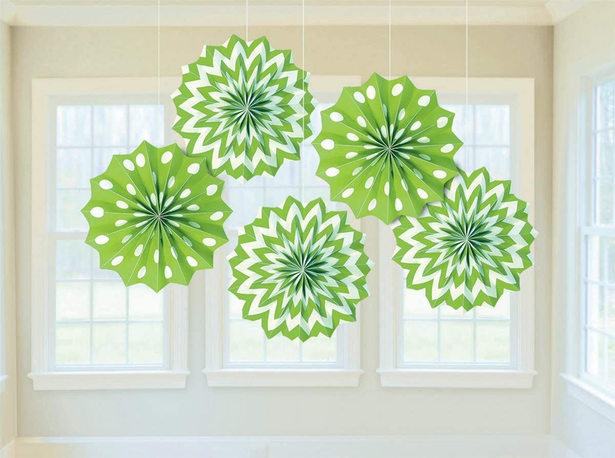 Lime Green Hanging Paper Fan Decorations - 5 Pack