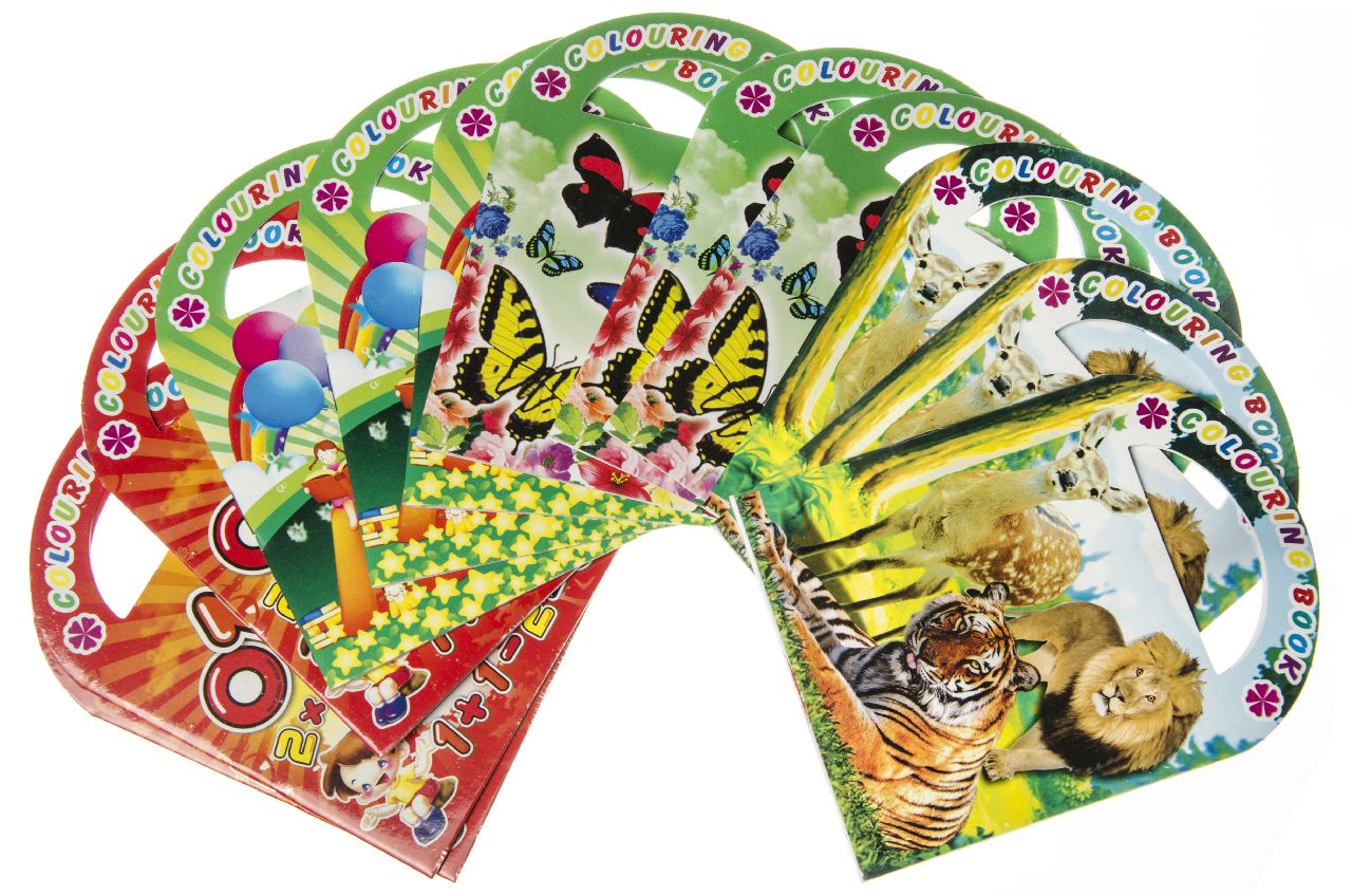 Assorted Sticker & Colouring Books With Handles - 6 Pack
