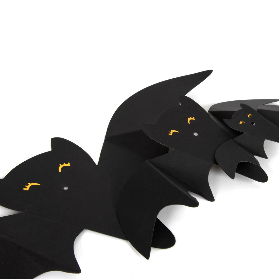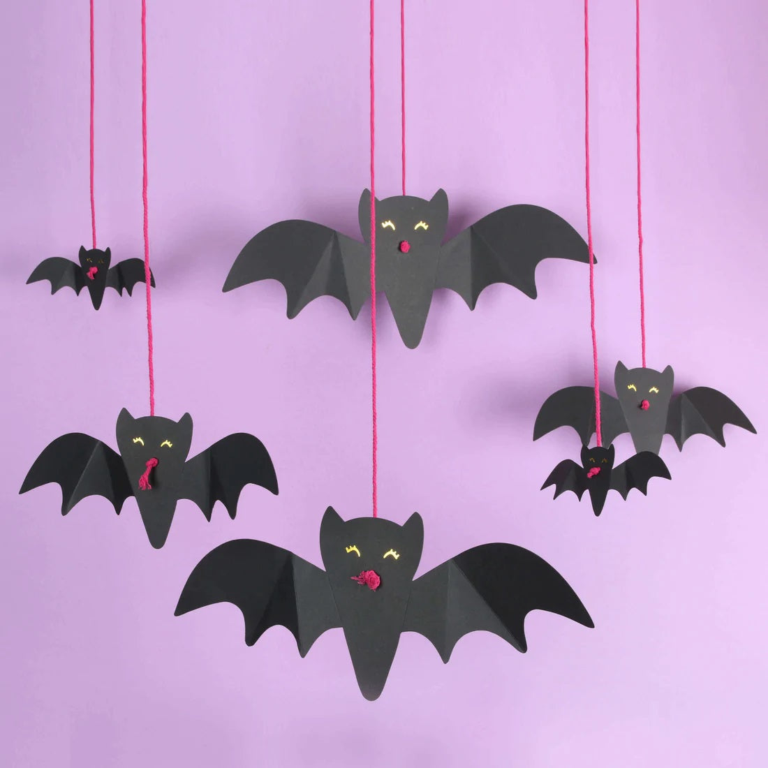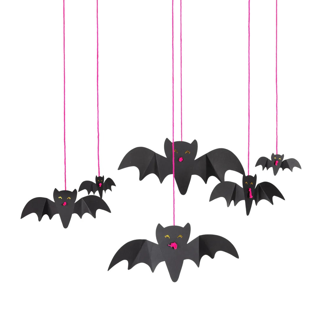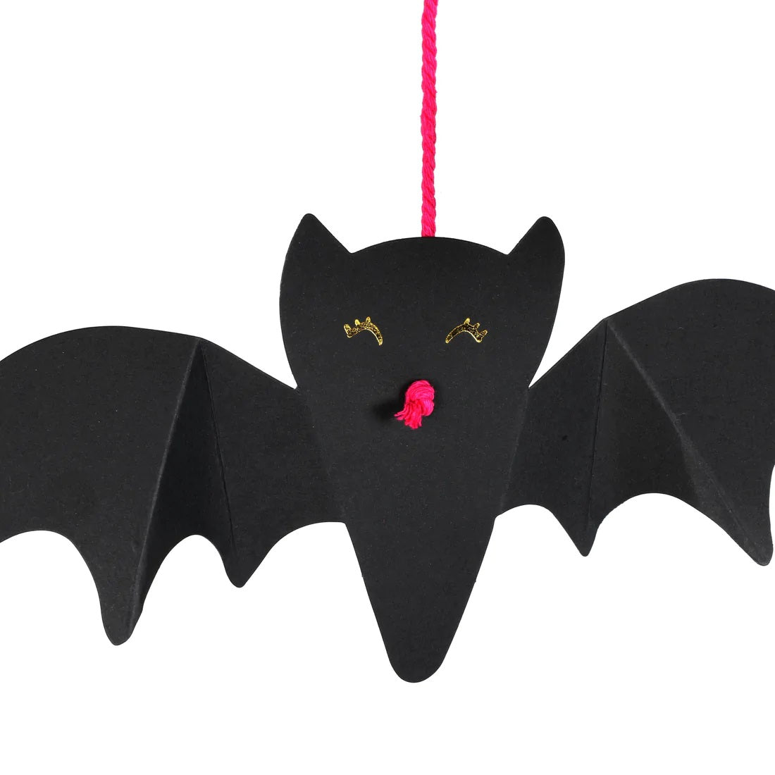 • SET - Pack includes 6 card bats consisting of 3 sizes, gold foil printed eyes and a length of 2.5 metre string to cut to your requirements.