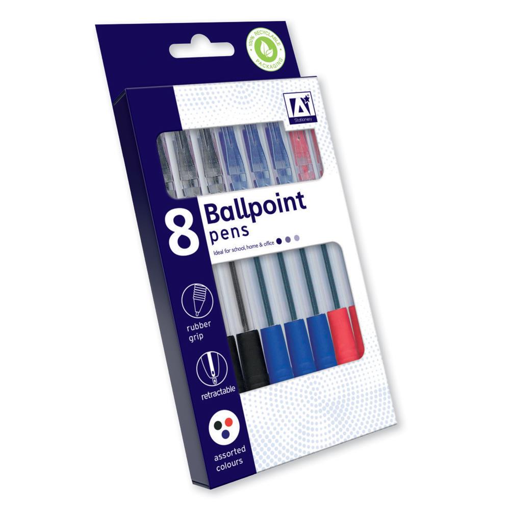 Assorted Pack Ballpoint Grip Pens - 8 Pack